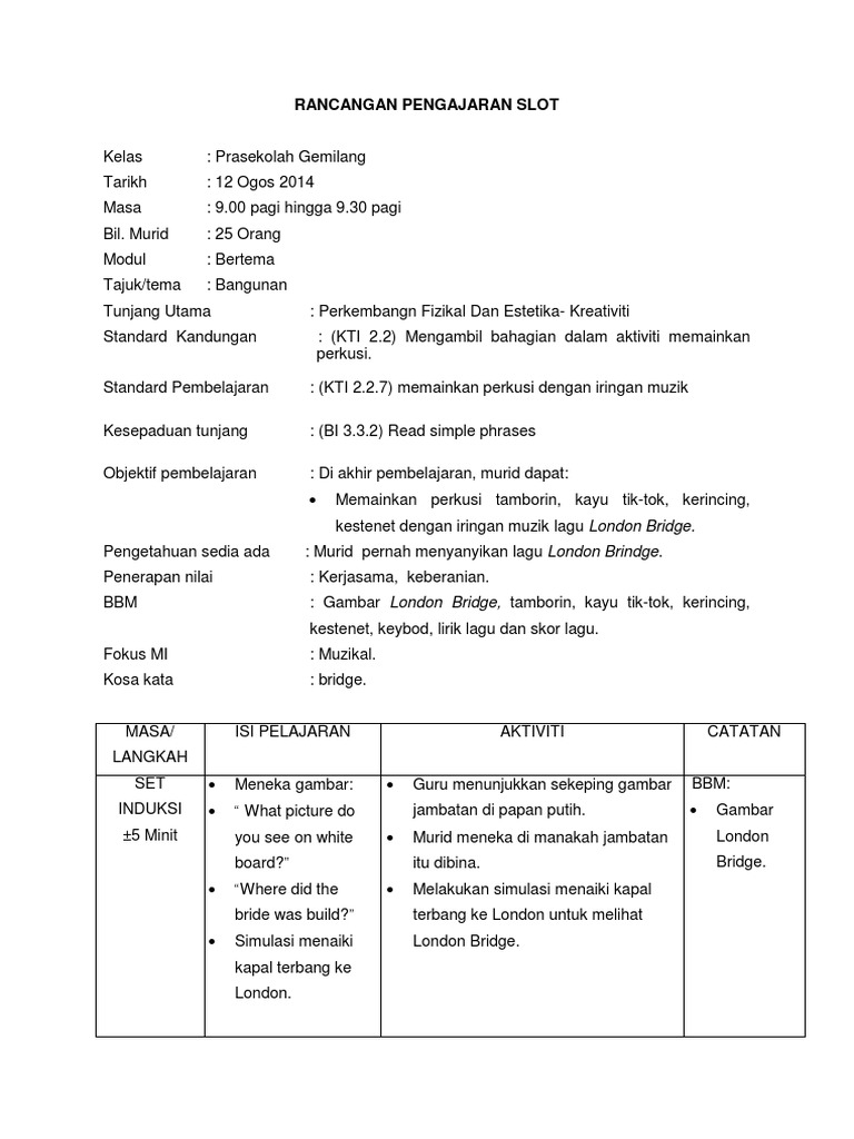 Kkbi Rancangan Pengajaran Slot Pdf