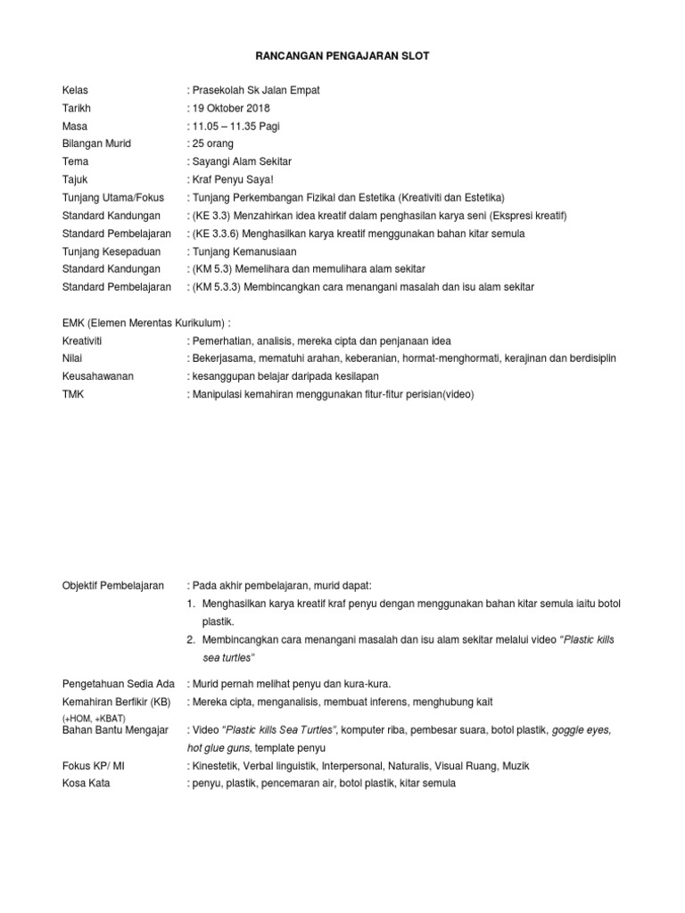 Rancangan pengajaran harian slot kreativiti dan estetika a rancangan pengajaran harian slot kreativiti dan estetika game from a world spread software provider. RANCANGAN PENGAJARAN HARIAN SLOT KELAS Bertema Nama Kelas. Moreover a slot should be exciting to play not boring.