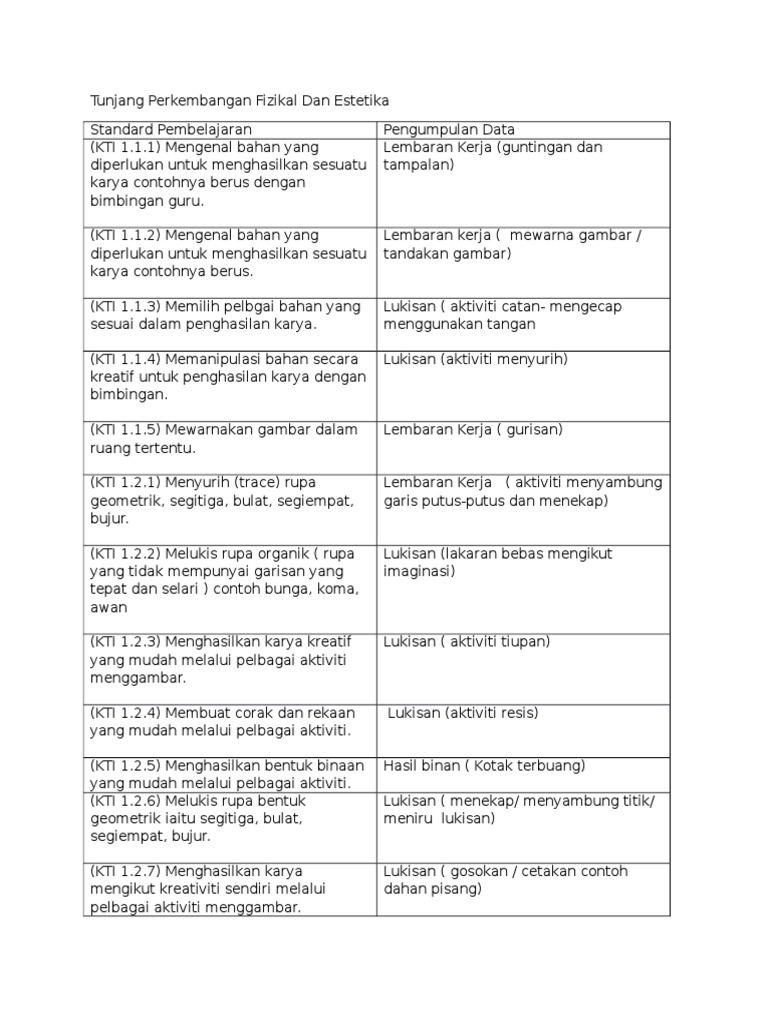 Standard Pentaksiran Tunjang Perkembangan Fizikal Dan Estetika Pdf