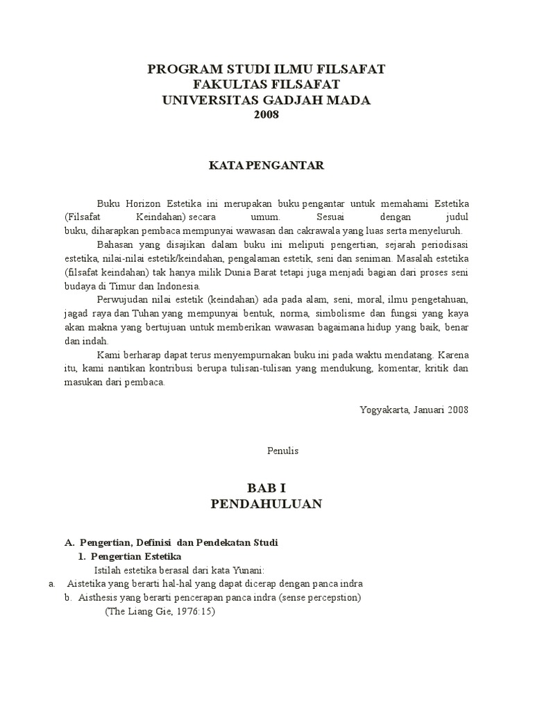 Kebudayaan adalah salah satu yang bentuk tindakan sosial tidak bisa terlepas dari kehidupan sehari-hari. 195701031983031003 JURUSAN SENI RUPA FAKULTAS BAHASA DAN SENI UNIVERSITAS NEGERI SEMARANG TAHUN 2015 0 BAHAN AJAR PERTEMUAN KE-I SD3 POKOK BAHASAN I PENGERTIAN ESTETIKA DAN LINGKUP KAJIANNYA 1. Estetika juga sering digunakan sebagai dasar dalam berabagai bidang seperti desain arsitektur dan seni.