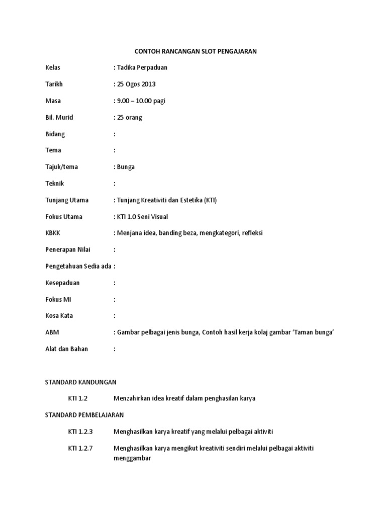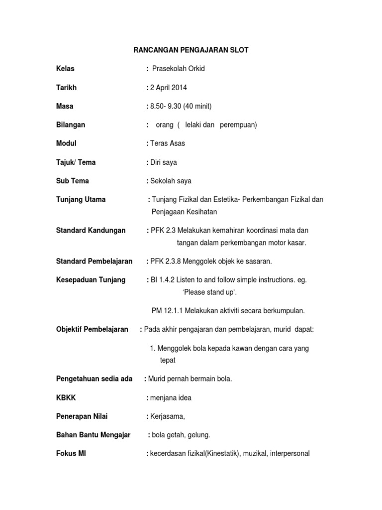 Rancangan Pengajaran Slot Prasekolah Pdf