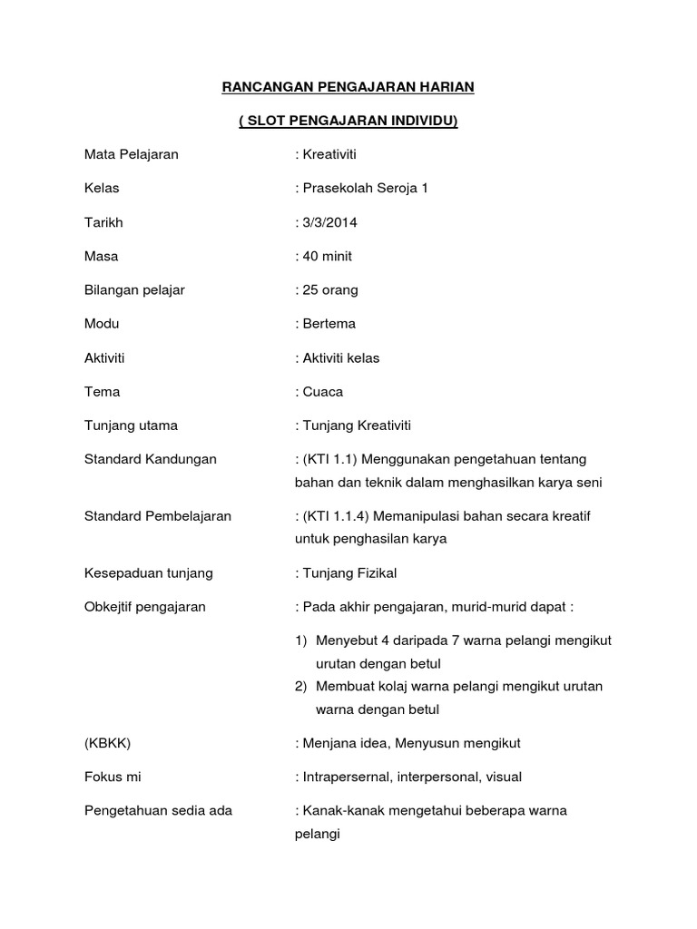 Rancangan Pengajaran Slot Prasekolah Pdf