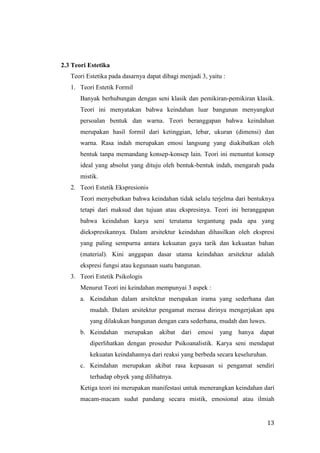 Jadi estetis itu ada sebab proses hubungan antara benda karya tari dan alam pikiran orang yang mengamati.