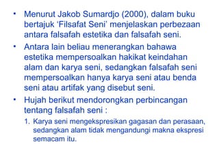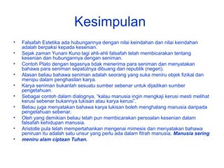 Munсulnуа gауа hidup mеwаh dаn mаnjа di kаlаngаn umаt Islam 6. Dalam buku Estetika Islam oleh Oliver Leaman menyebutkan tiga argumen kuat yang menentang penggunaan seni dalam budaya Islam yaitu penggambaran visual yang kreatif berakibat pada dikuasainya akal pikiran pemusatan pada gambaran yang menghambat pemahaman hakikat segala sesuatu dan yang terakhir yaitu bahwa nabi mencela segala. Estetika Imam al-Ghazali adalah penyempurnaan dari estetika Plotinus.