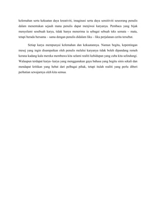 138 Dilan Dia. Contoh Nilai Estetika 1. Cerpen dan Novel yakni salah satu karya sastra.