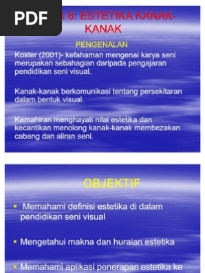 Kanak-kanak dilahirkan dengan mempunyai. Nilai estetika secara auditif berdasarkan iringan tarinya. Dalam istilah visual estetika.